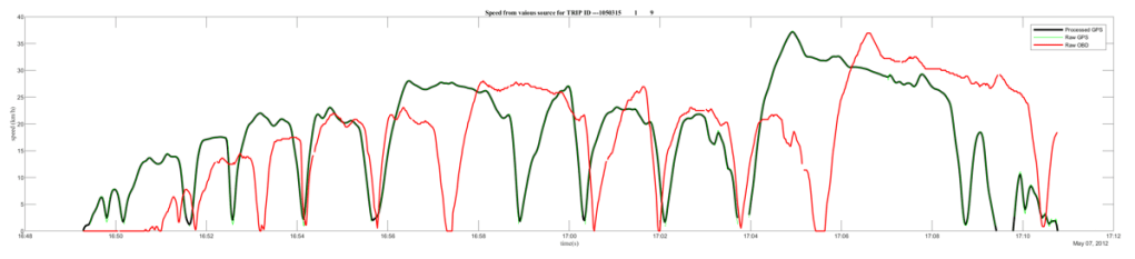 43,000 csv files corresponding to trips were created. Similarly, trip level files were created for the OBD datasets. When we compared the speed profiles of both GPS and OBD datasets and found some issues with OBD set, which was not reported in the documentation but later confirmed by the data.